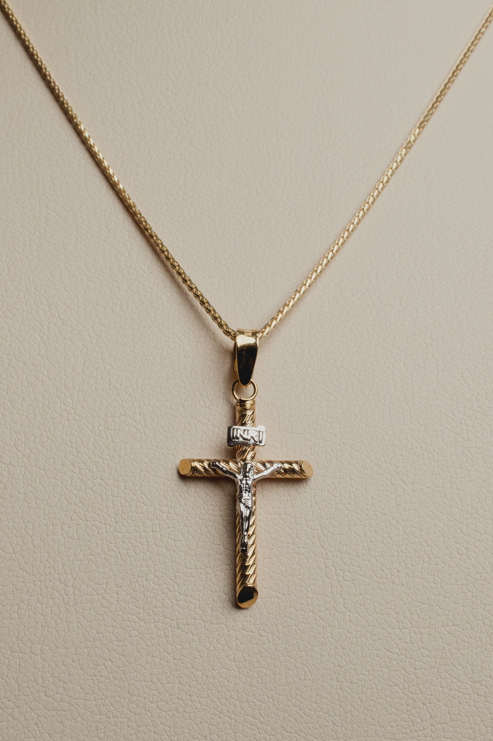 Cristo tubular con textura en oro amarillo de 10k