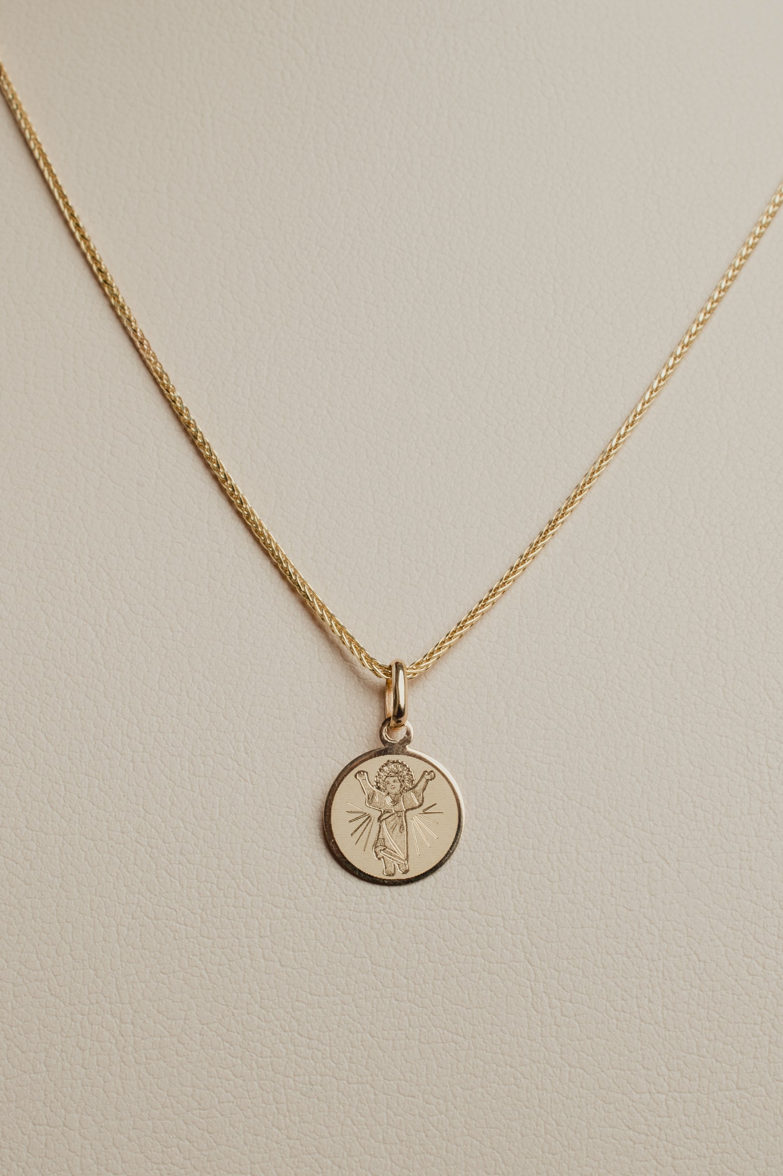 Medalla italiana redonda divino niño láser en oro amarillo de 10k