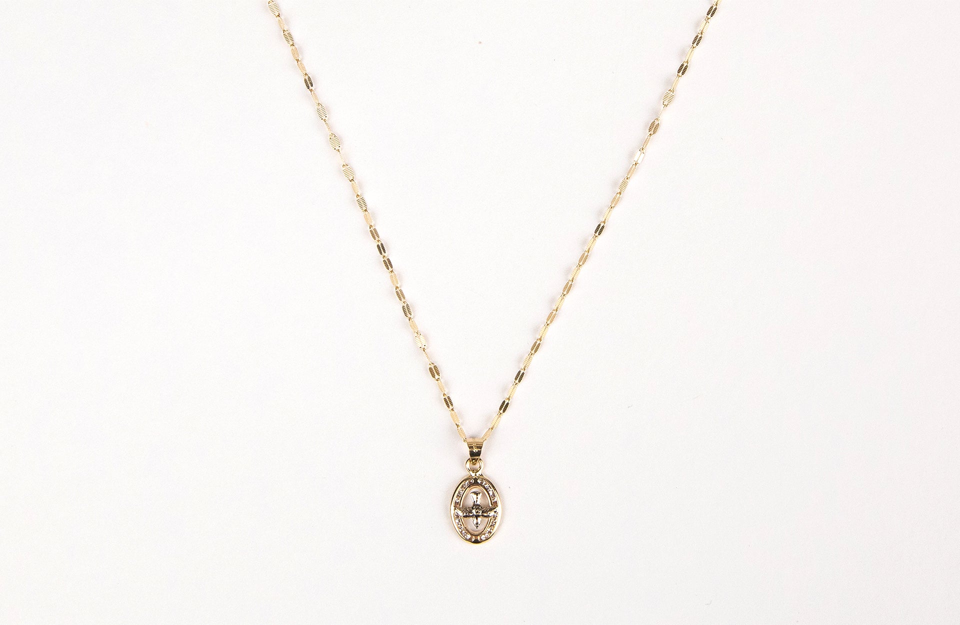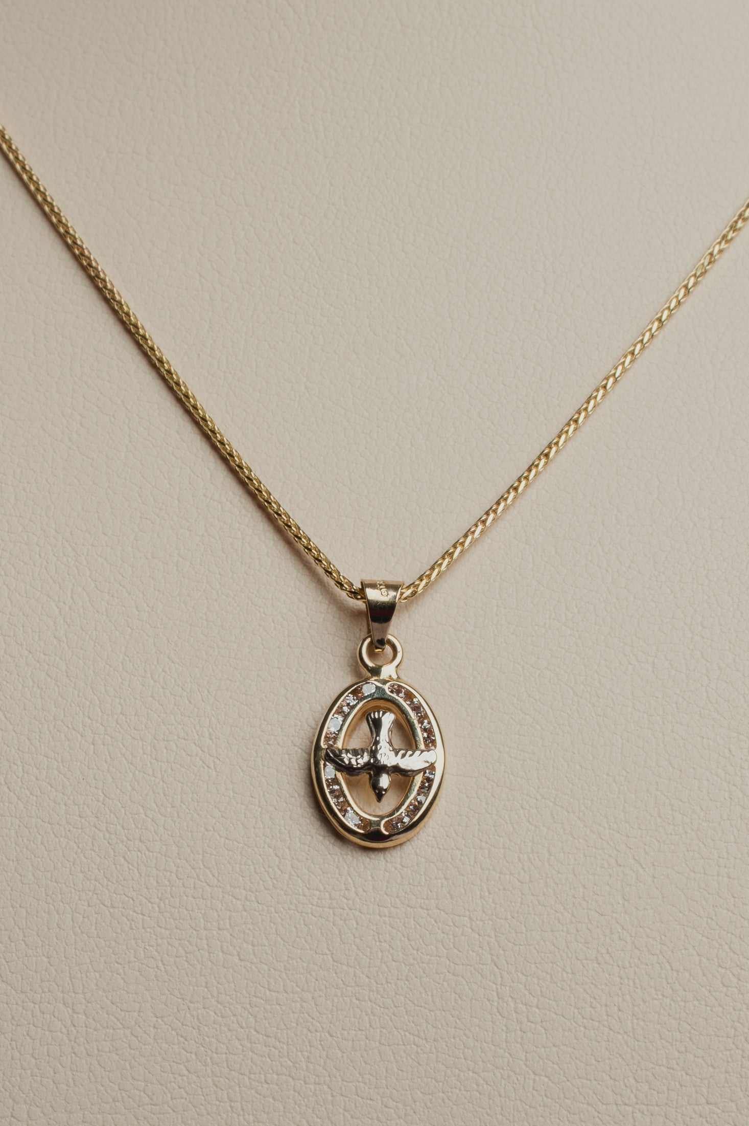 Medalla ovalada del espíritu santo en oro amarillo y blanco de 10k